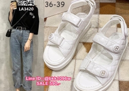รองเท้ารัดส้นเก๋ๆ วัสดุหนังนิ่ม บุนวม รัดส้นแบบเมจิกเทป ปรับได้3จุด งานสวย พื้นหนา1นิ้ว