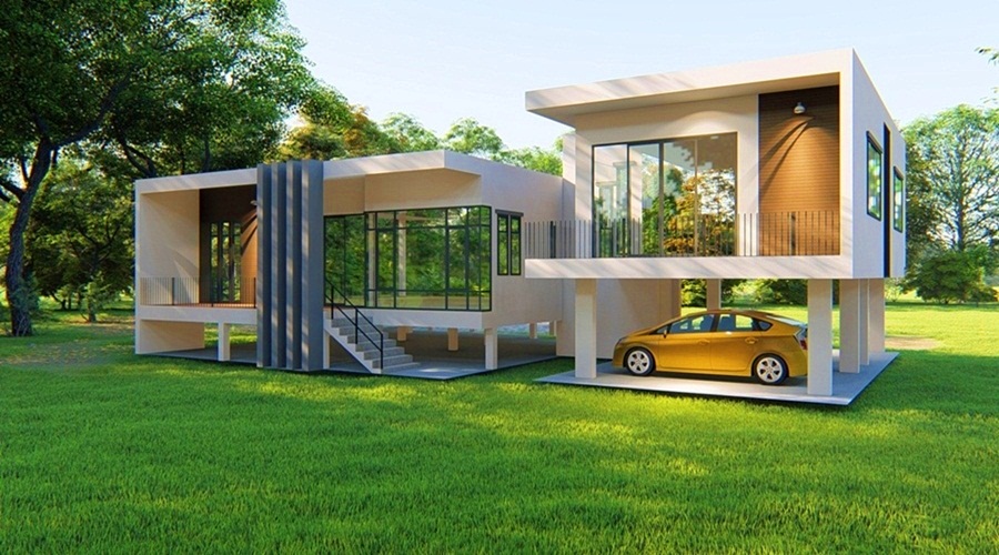 - สไตล์โมเดิร์นพลิกรูปแบบบ้านน็อคดาวน์แนวเดิม ๆ ของเมืองไทย ในมุมมองต่าง ๆ กับความอิสระใหม่ ๆ พร้อมก้าวสู่ยุคสมัยที่เดินไปข้างหน้าเป็นโครงสร้างเหล็ก ผนังกรุด้วยสมาร์ทบอร์ด พื้นห้อง พื้นห้องน้ำปูกระเบื้อง ตัวบ้านติดตั้งระบบไฟฟ้า ประปา สุขภัณฑ์
