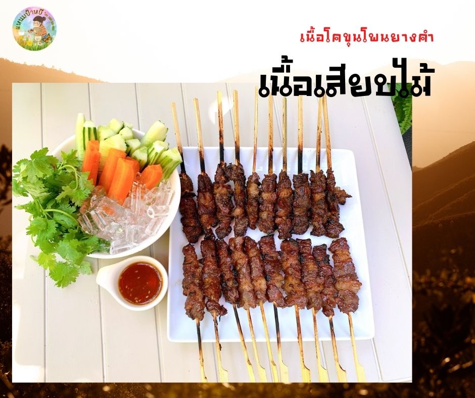เนื้อโคขุนโพนยางคำ แบบเสียบไม้ แสนอร่อย
