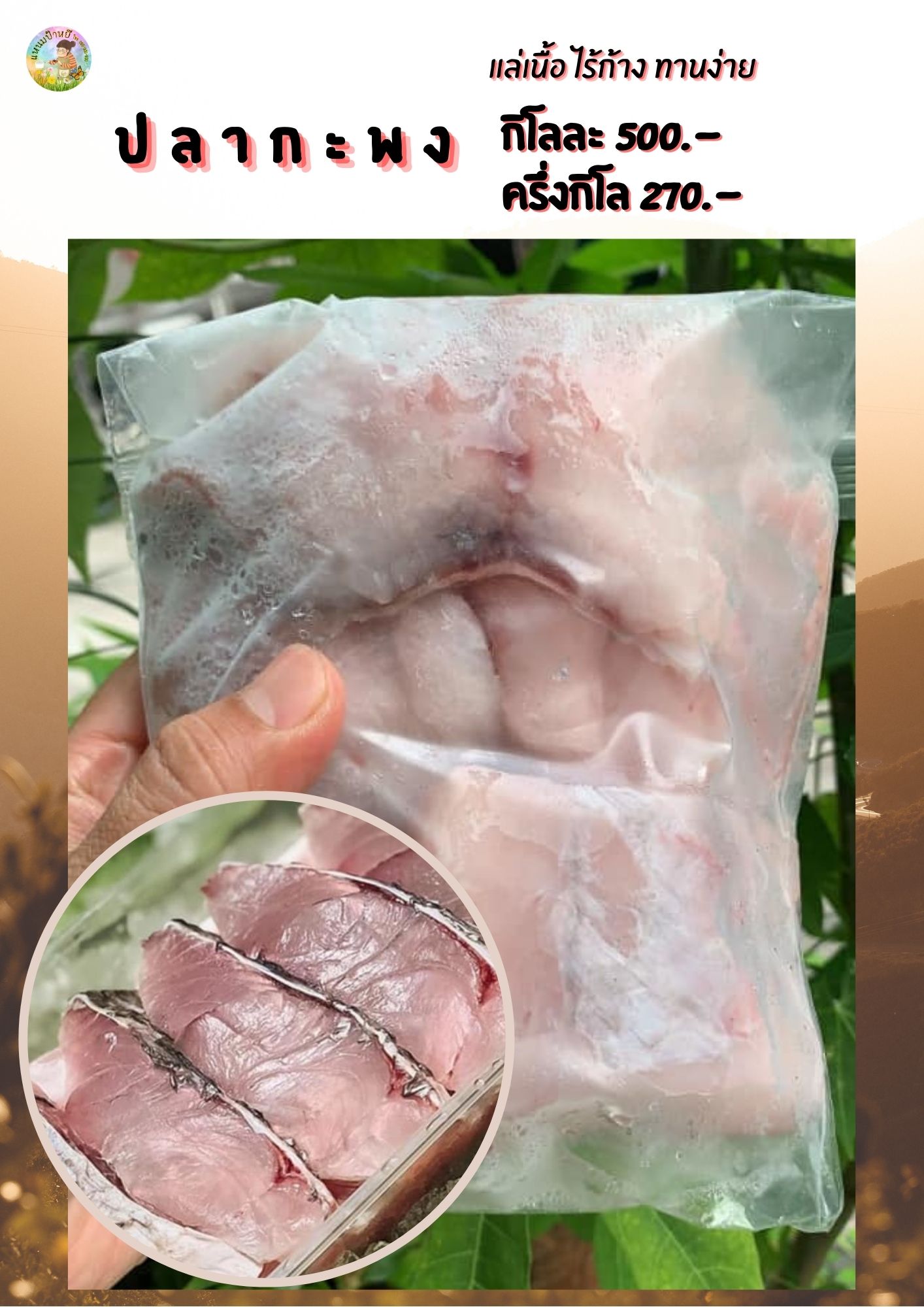 #ปลากะพงสด แล่เนื้อ ไร้ก้าง เนื้อแน่น ชิ้นใหญ่ ไม่คาว ทานง่ายเพราะไม่มีก้าง กิโละ 500.- ครึ่งกิโล 270.- สั่งซื้อโทร.086-345-8600 ,085-308-6677