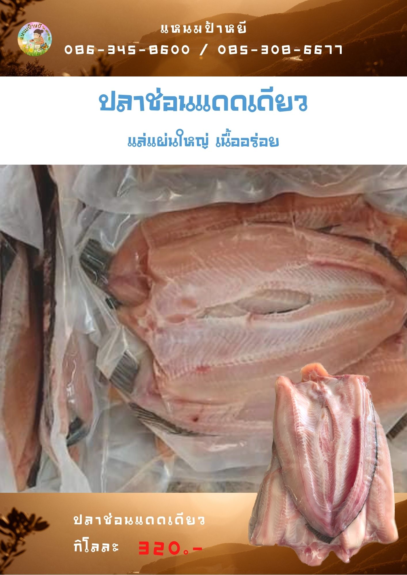 ปลาช่อนแดดเดียวแม่ลา พร้อมทอดอร่อยง่ายทันใจ เพียงใส่กระทะ ตัวใหญ่มากๆ กิโละ 320 บามเท่านั้น สั่งซื้อโทร 086-345-8600 , 085-308-6677 หรือทักแชทมาได้เลยค่ะ