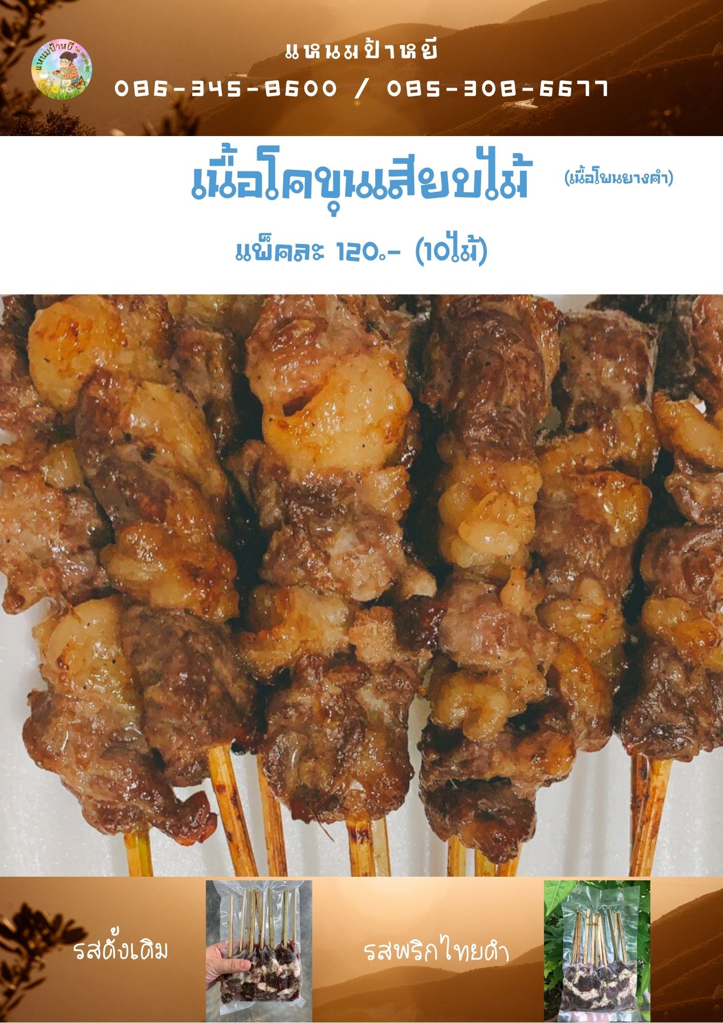 • #เนื้อโคขุนโพนยางคำ แบบเสียบไม้ หมักปรุงรสแล้วเรียบร้อย