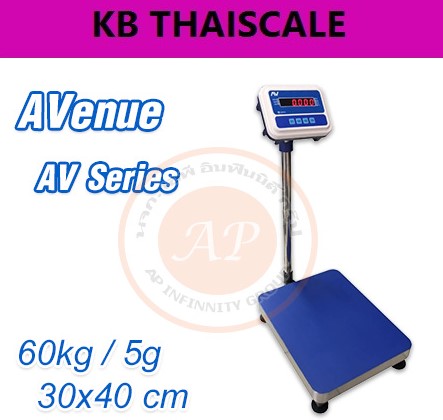 ตาชั่งดิจิตอล เครื่องชั่งดิจิตอล เครื่องชั่งตั้งพื้น (แท่นชั่งมีระดับน้ำ) ชั่งได้ 60kg ค่าละเอียด 5g ขนาดแท่น 30x40cm ยี่ห้อ K-SCALE รุ่น AV Series พิกัด 60kg/5g