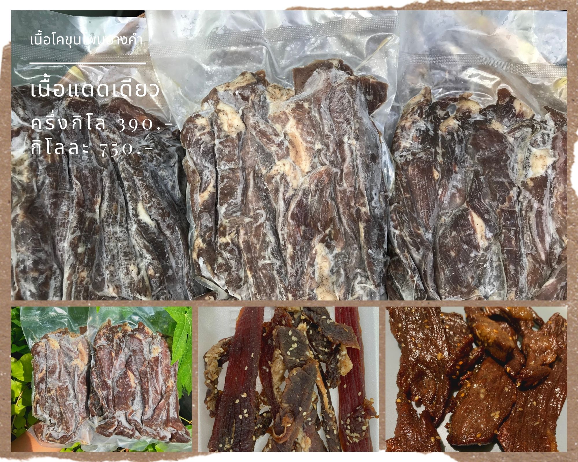 เนื้อแดดเดียวโพนยางคำ เนื้ออย่างดี เนื้อคุณภาพ สั่งได้ค่ะ กิโลละ 750 บาท แพ็คครึ่งกิโล 390 บาท สั่งซื้อได้จ้า 086-345-8600 ,085-308-6677 ติดตามเพจ Facebook : https://www.facebook.com/naempayhee