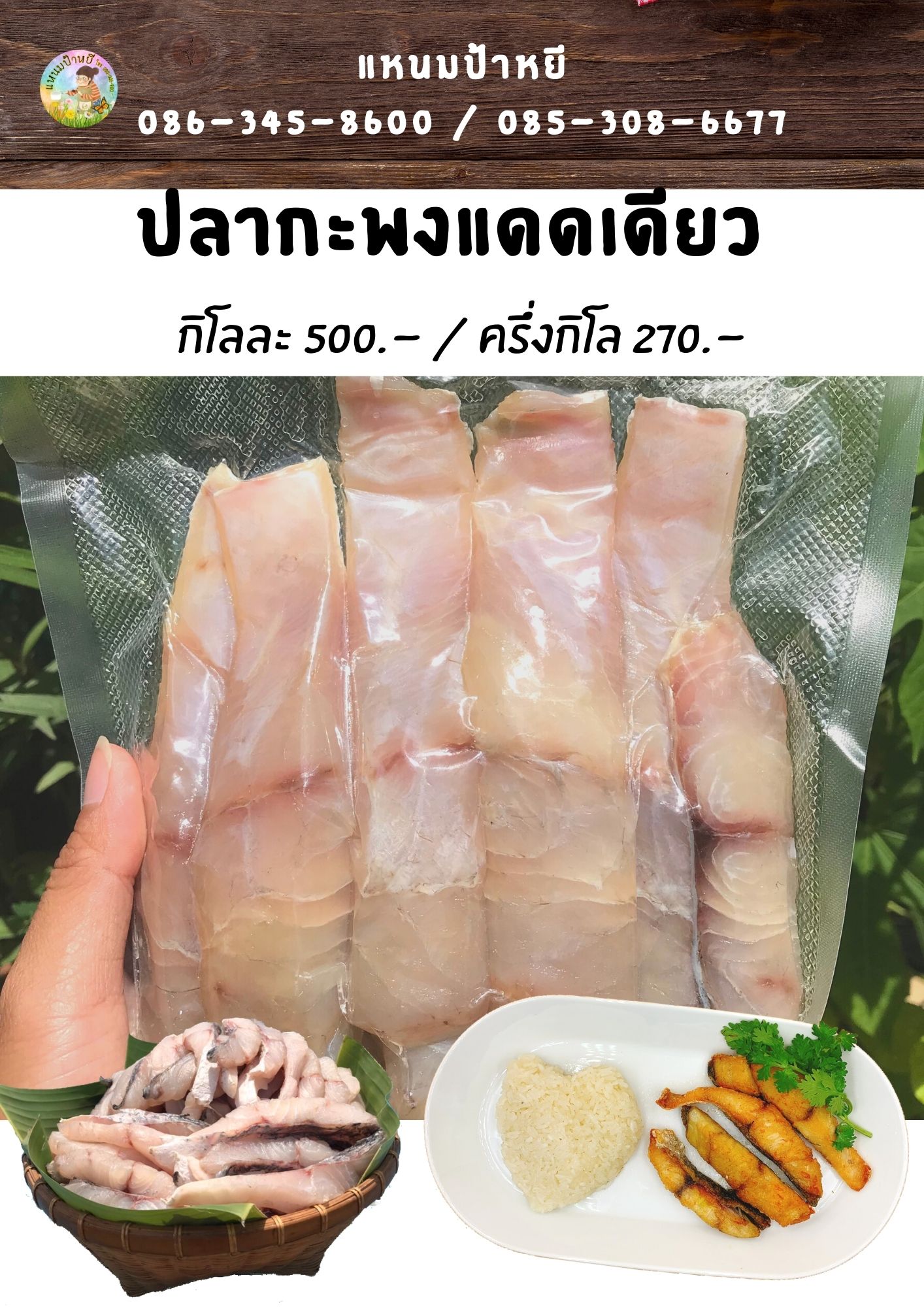 #ปลากะพงแดดเดียว แล่เนื้อ ไร้ก้าง เนื้อแน่น ชิ้นใหญ่ ไม่คาว ทานง่ายเพราะไม่มีก้าง กิโละ 500.- ครึ่งกิโล 270.- สั่งซื้อโทร.086-345-8600 ,085-308-6677 ติดตามเพจ Facebook : https://www.facebook.com/naempayhee