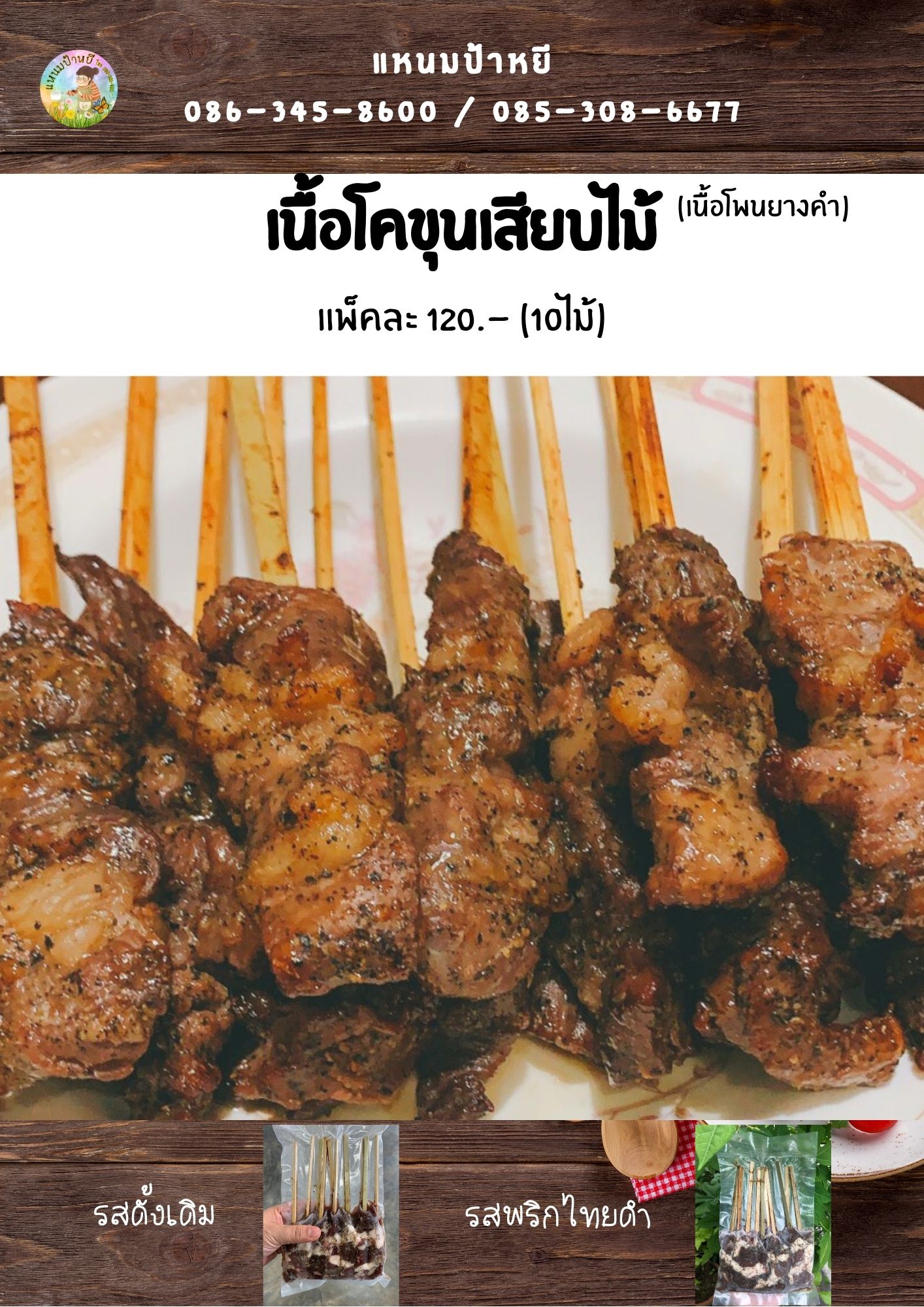 เนื้อโคขุนโพนยางคำ แบบเสียบไม้ 2รสชาติโดนใจ