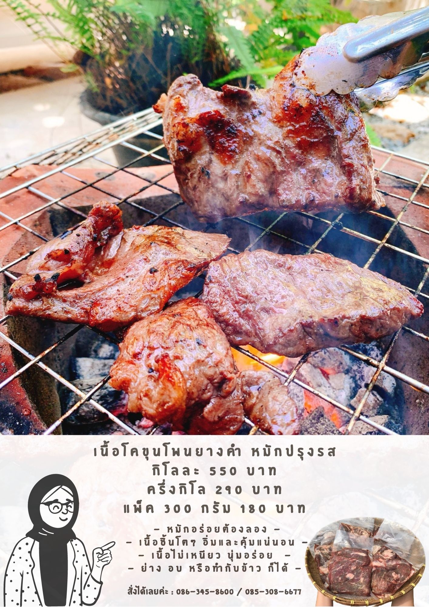 • เนื้อหมักปรุงรสโพนยางคำ เนื้อชิ้นโตๆ อิ่มและคุ้มแน่นอน