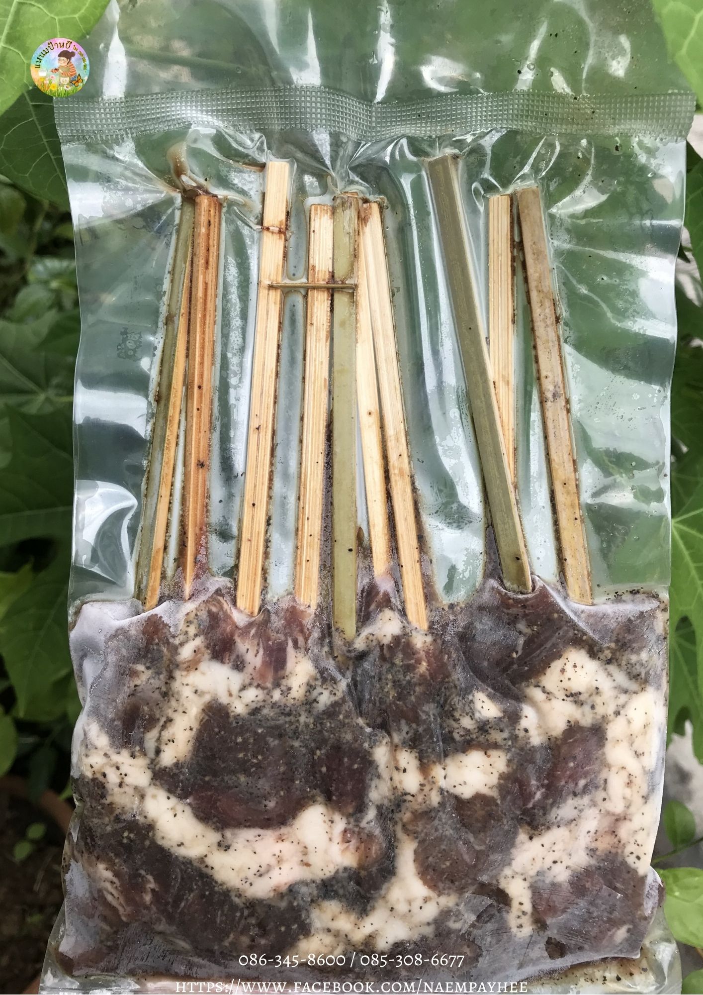 • #เนื้อโคขุนโพนยางคำ แบบเสียบไม้ หมักปรุงรสแล้วเรียบร้อย