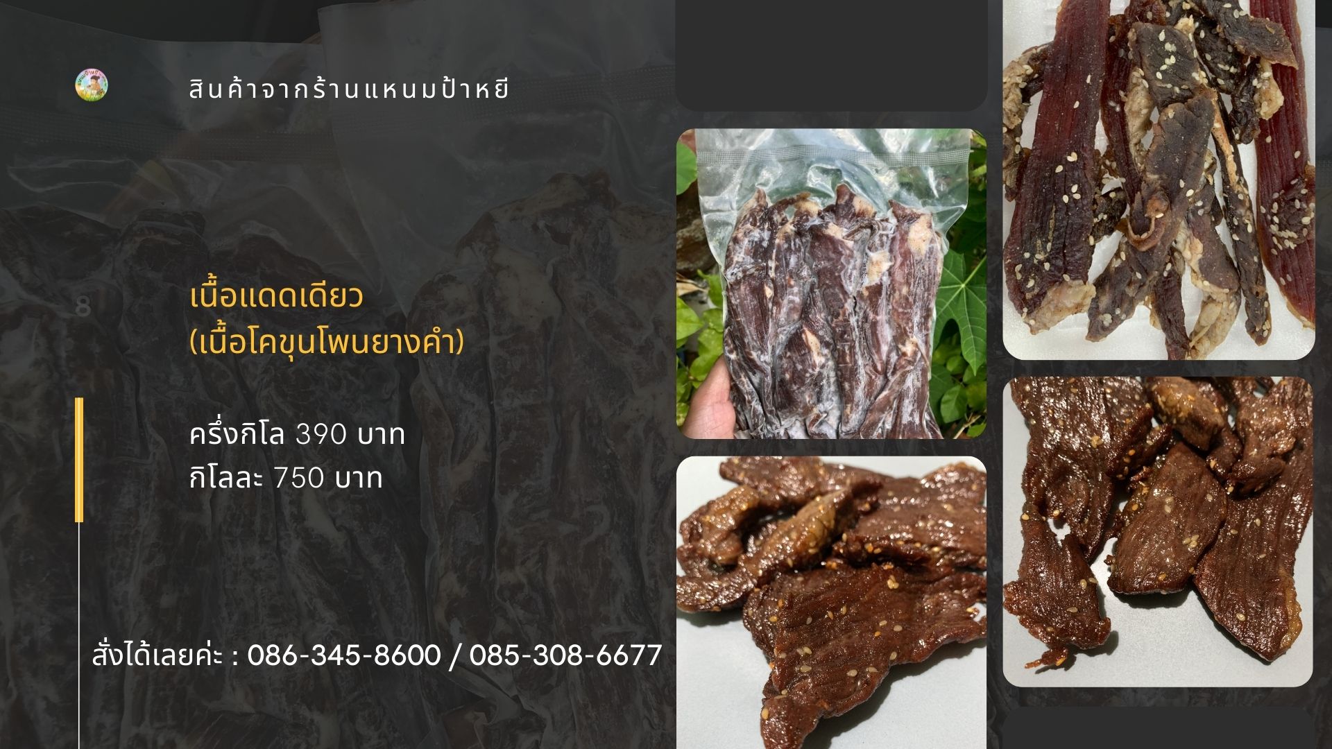 • เนื้อแดดเดียวโพนยางคำ เนื้ออย่างดี เนื้อคุณภาพ สั่งได้ค่ะ