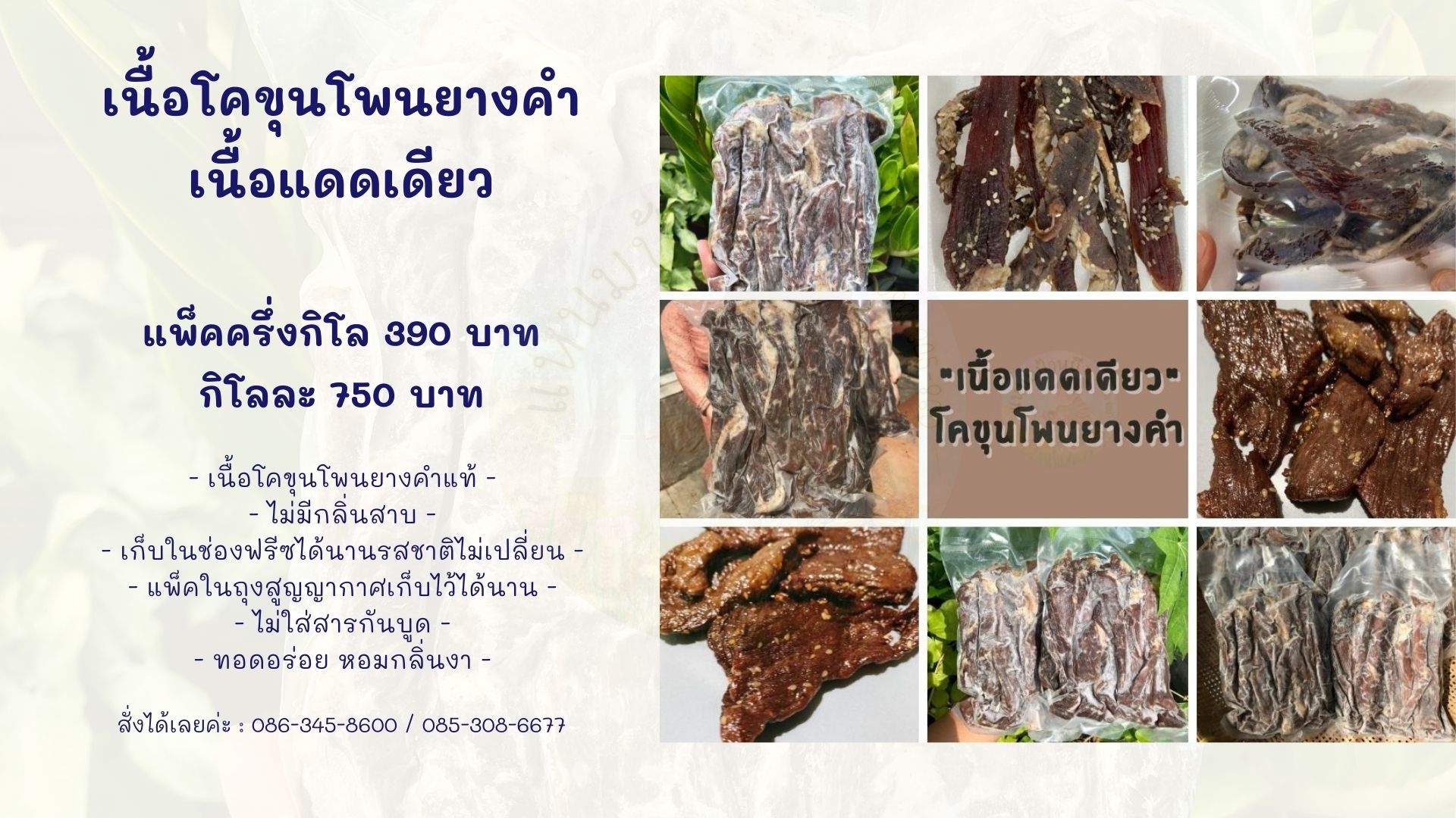 • เนื้อแดดเดียวโพนยางคำ เนื้ออย่างดี เนื้อคุณภาพ สั่งได้ค่ะ
