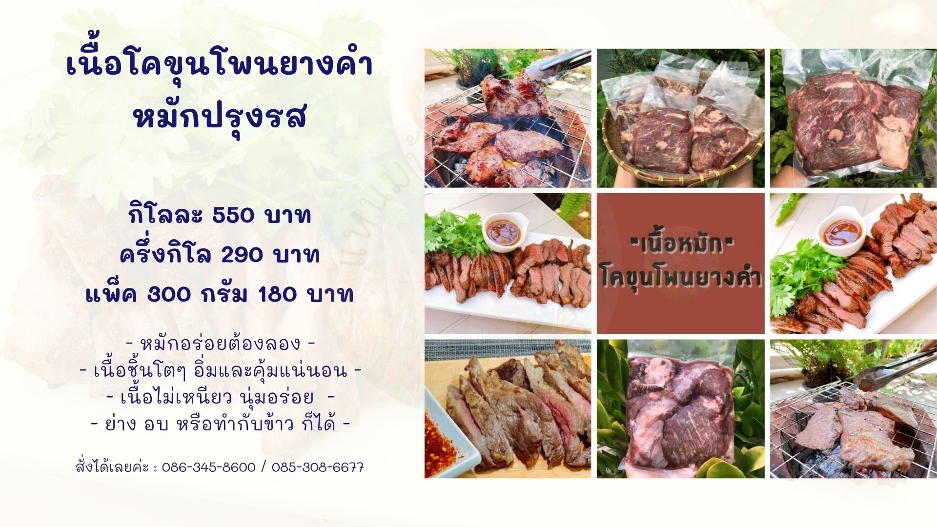 • เนื้อหมักปรุงรสโพนยางคำ เนื้อชิ้นโตๆ อิ่มและคุ้มแน่นอน