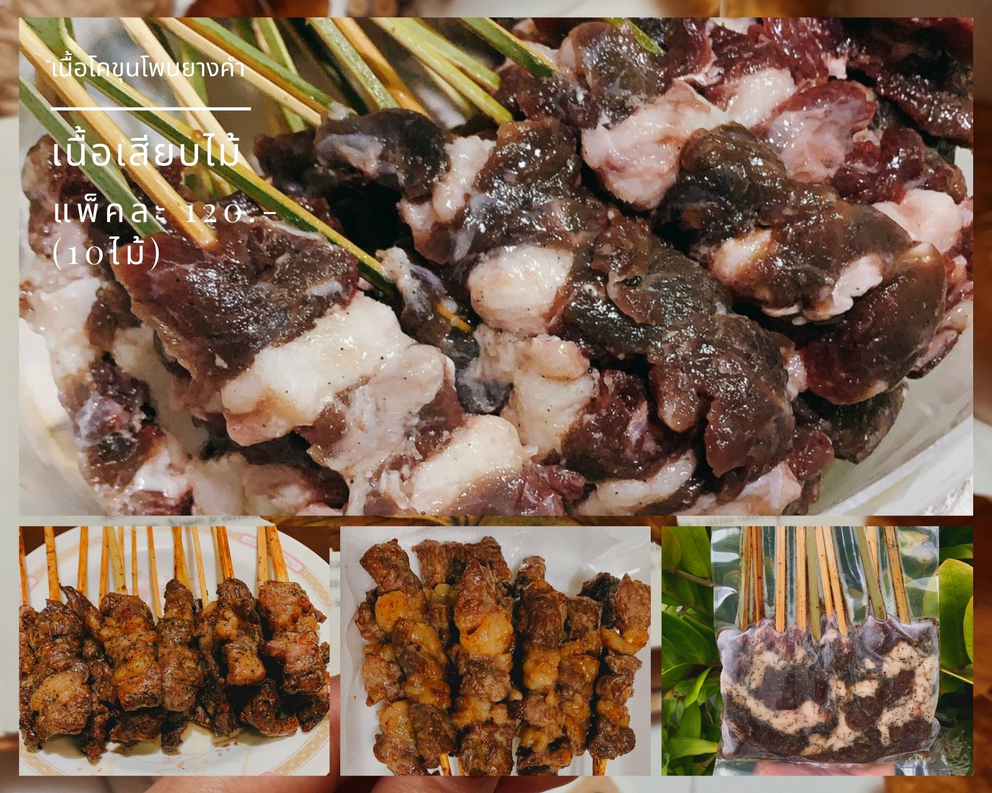 • #เนื้อโคขุนโพนยางคำ แบบเสียบไม้ หมักปรุงรสแล้วเรียบร้อย