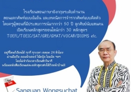 เปิดสอนหลักสูตรออนไลน์ภาษาอังกฤษกว่า 30 หลักสูตร TOEFL/TOEIC/IELTS/O-Net/GAT/ENT'/SAT/GRE/GMAT/VOCAB etc. รวมถึงในส่วนของ 9 วิชาสามัญ และ CU-TEP