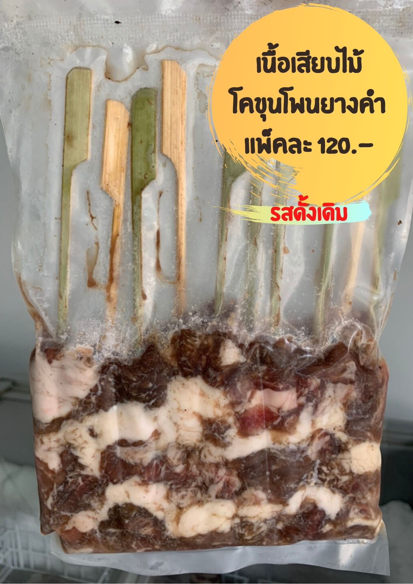 • #เนื้อโคขุนโพนยางคำ แบบเสียบไม้ หมักปรุงรสแล้วเรียบร้อย
