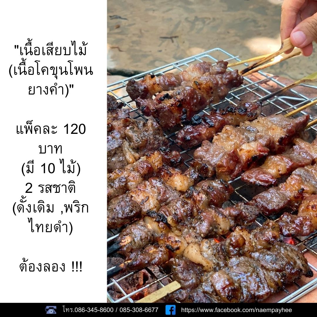 Darakorn Travel#เนื้อโคขุนโพนยางคำ แบบเสียบไม้ หมักปรุงรสแล้วเรียบร้อย