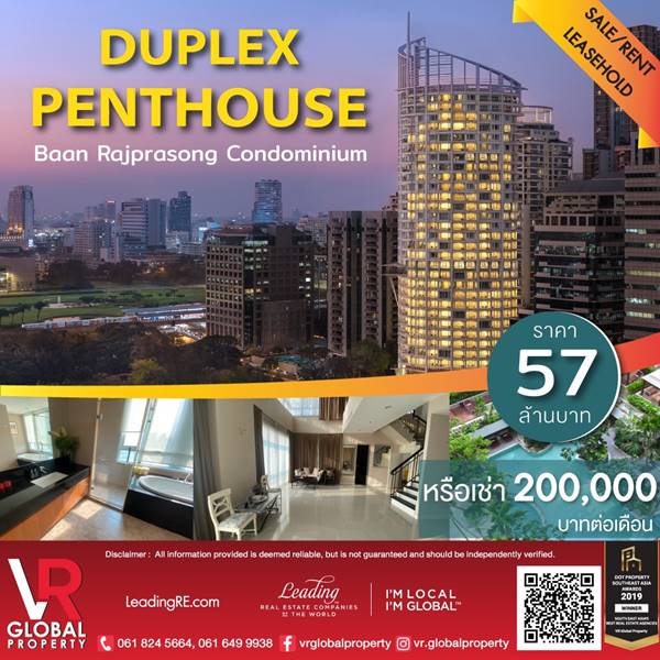 Sales (Leasehold) / Rent a Luxury Duplex Penthouse in the middle of the city (sale price 57 million baht)
