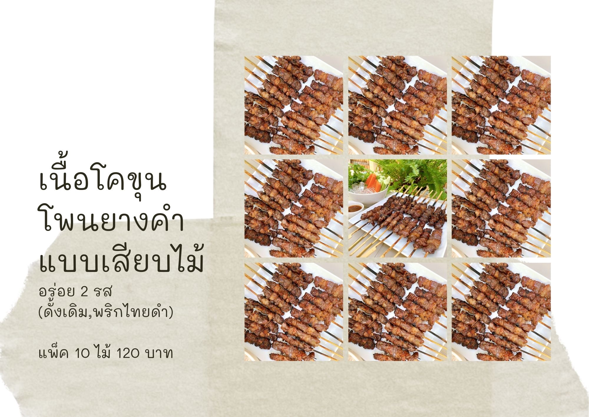 • #เนื้อโคขุนโพนยางคำ แบบเสียบไม้ หมักปรุงรสแล้วเรียบร้อย