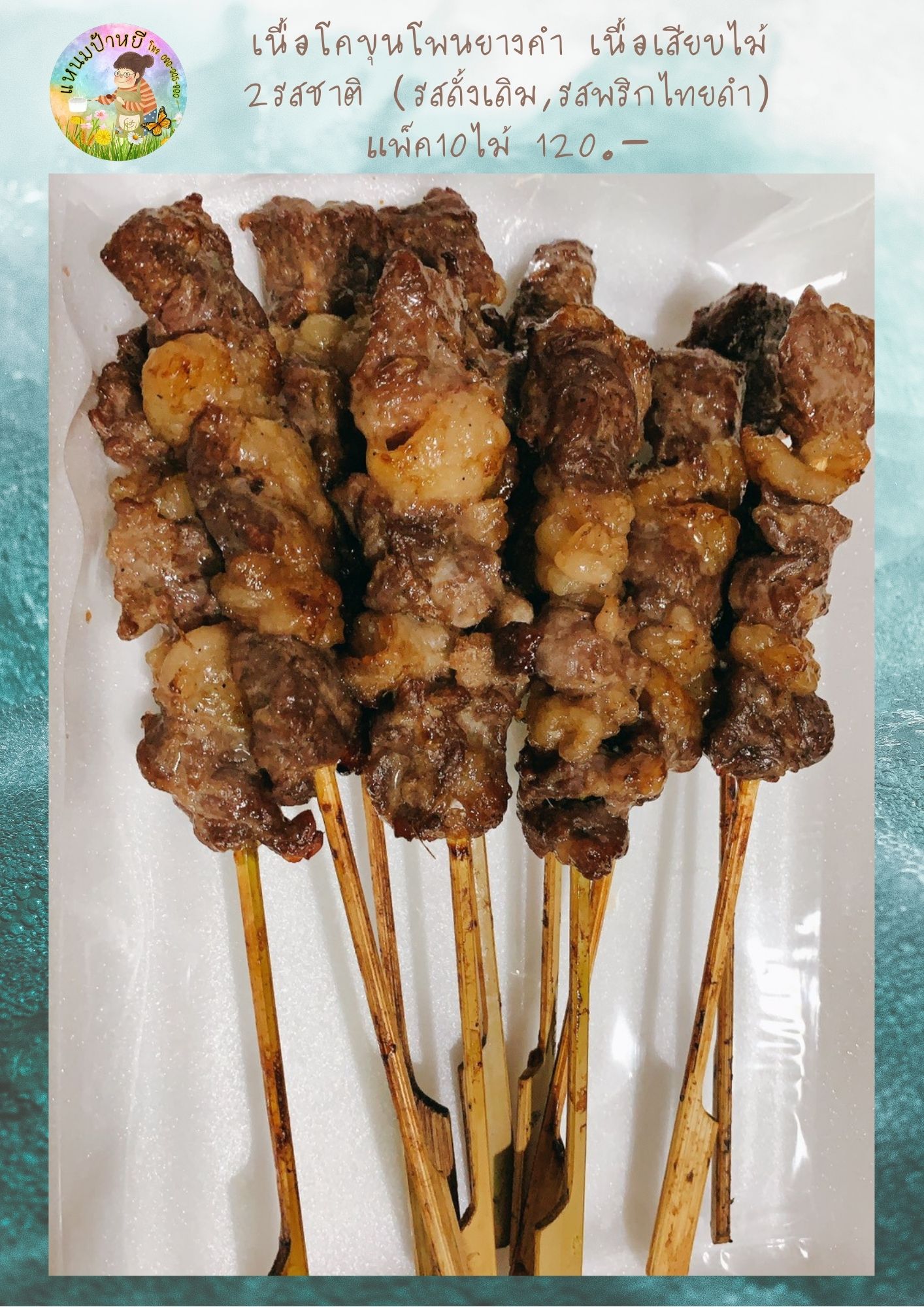 • #เนื้อโคขุนโพนยางคำ แบบเสียบไม้ หมักปรุงรสแล้วเรียบร้อย