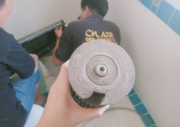 ใช้ปั้มน้ำแรงดันสูงฉีดอัดล้างท่อน้ำทิ้ง และชิ้นส่วนต่างๆ อย่างละเอียด