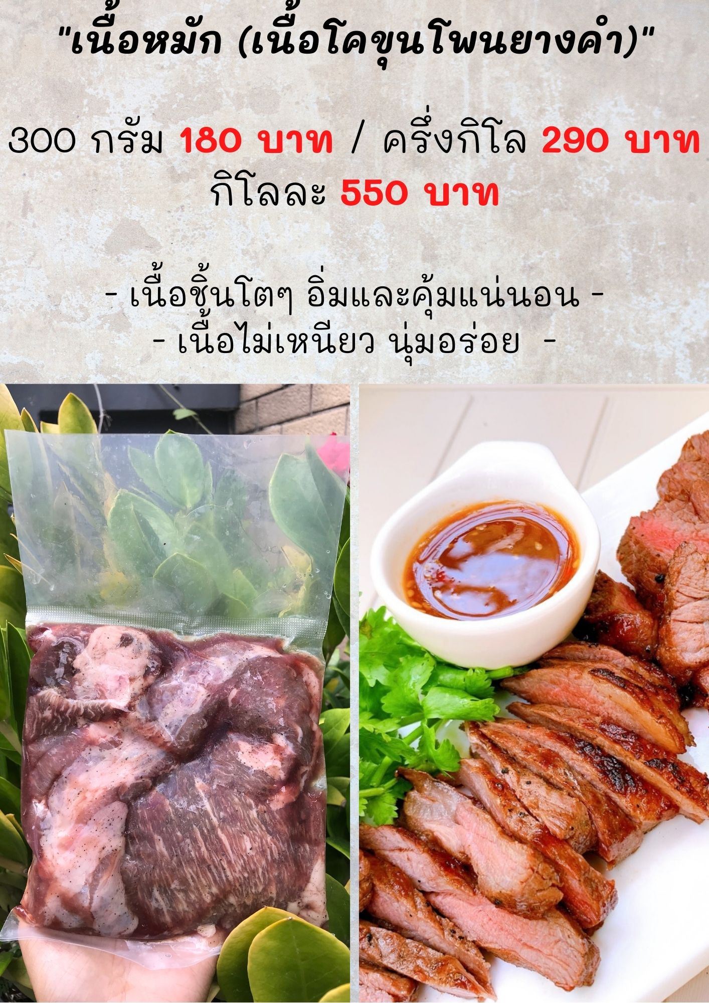 - เนื้อไม่เหนียว นุ่มอร่อย -