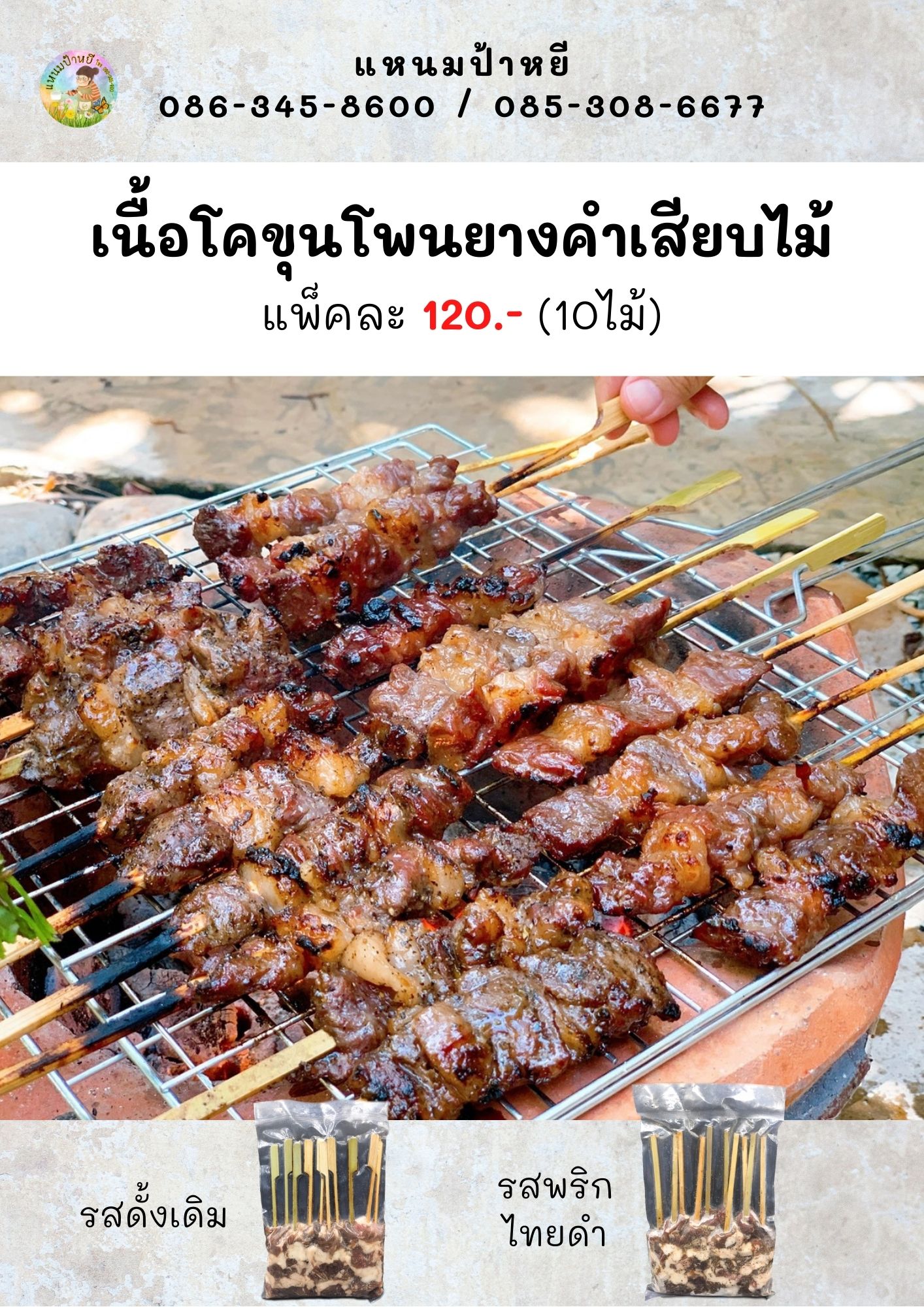เนื้อเสียบไม้โคขุนโพนยางคำ พร้อมส่งสั่งได้นะคะ