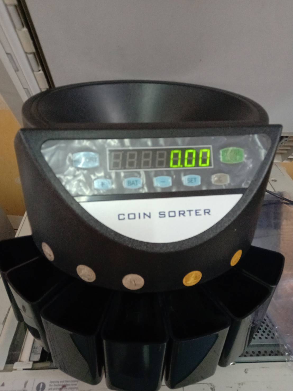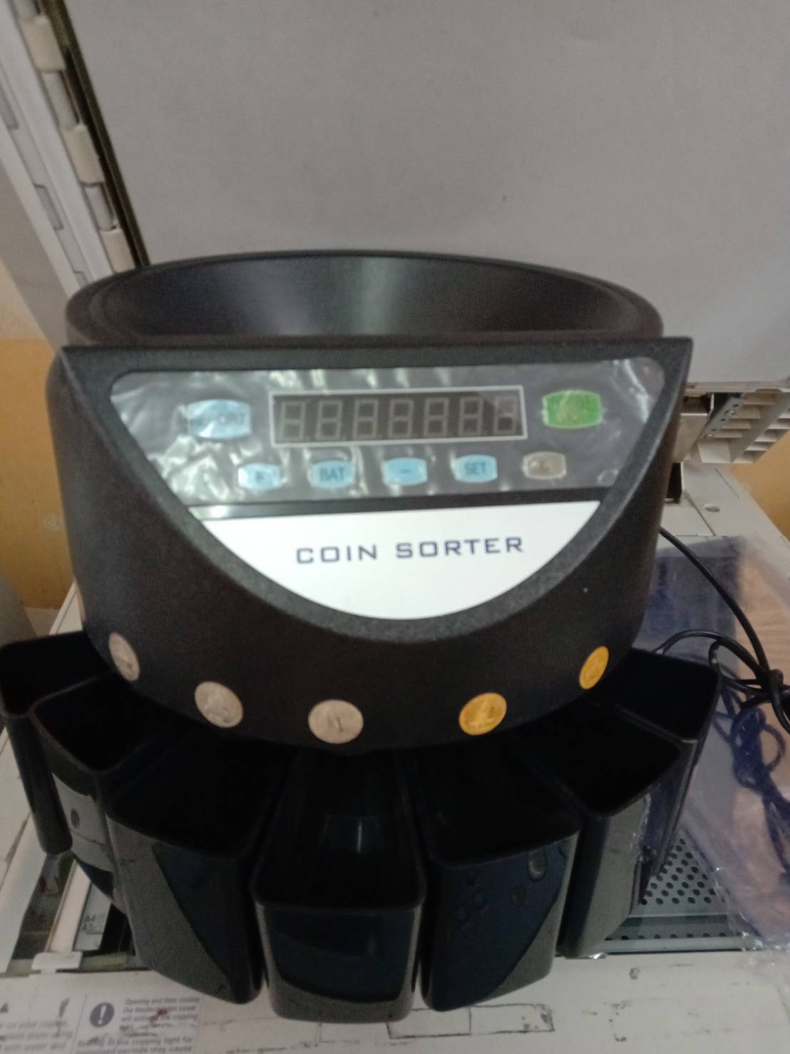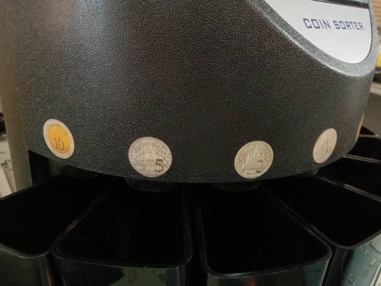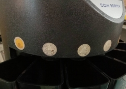 เครื่องนับเหรียญระบบดิจิตอล คัดแยกเหรียญและนับจำนวนเหรียญ หน้าจอ LED ตั้งจำนวนนับได้อิสระในแต่ละเหรียญ ความเร็วนับ 250เหรียญ/นาที ใช้ได้กับเหรียญไทย 0.25 0.5 1 2 5 10 บาท สามารถเทเหรียญทุกชนิดผสมกันลงเครื่องได้เลย เครื่องจะคัดแยกเหรีญแต่ละชนิดพร้อมนับจำนวนให้ตามที่ตั้งไว้ เมื่อนับครบเครื่องจะมีเสียงเตือน จอแสดงผลยอดเงินทั้งหมด และจำนวนเหรียญแต่ละชนิด จะมีช่องคืนเหรียญที่ด้านหลังเครื่องกรณีที่เหรียญไม่ได้มาตรฐานหรือชำรุด โปรแกรมที่ตั้งไว้ไม่สูญหายแม้ถอดปลั๊กไฟ ใช้งานง่ายมาก รวดเร็ว แม่นยำ