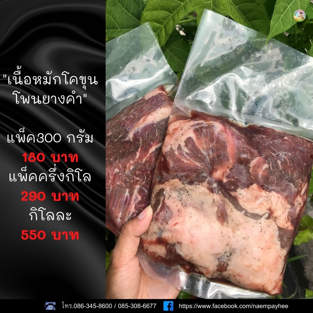• เนื้อหมักปรุงรสโพนยางคำ เนื้อชิ้นโตๆ อิ่มและคุ้มแน่นอน
