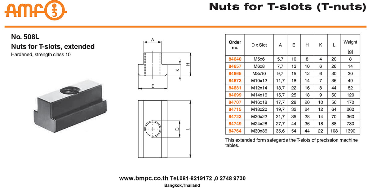 T-slot bolt DIN 787 : class 8.8, 12.9 Size M6-M42