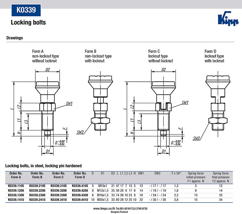 Model K0339 : Size M10, M12, M16, M20