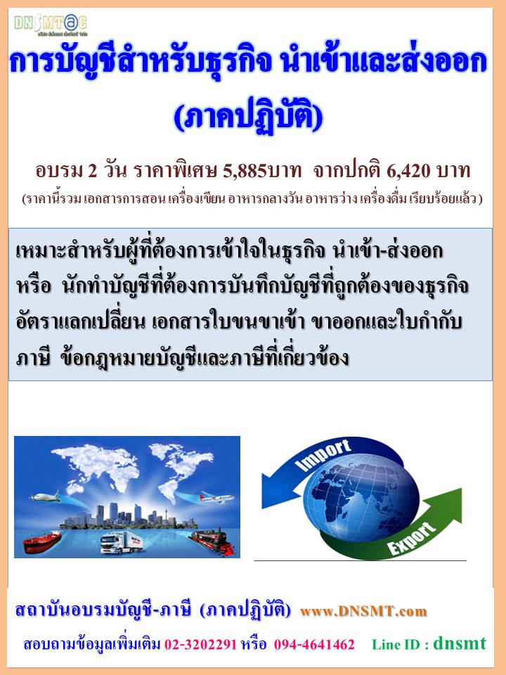 อบรม การบัญชี ภาษีสำหรับธุรกิจนำเข้าและส่งออก (ภาคปฏิบัติ)