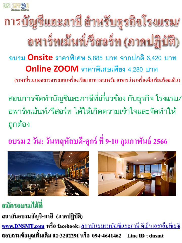 • การบัญชีและภาษี สำหรับธุรกิจโรงแรม/อพาร์ทเม้นท์/รีสอร์ท(ภาคปฏิบัติ)