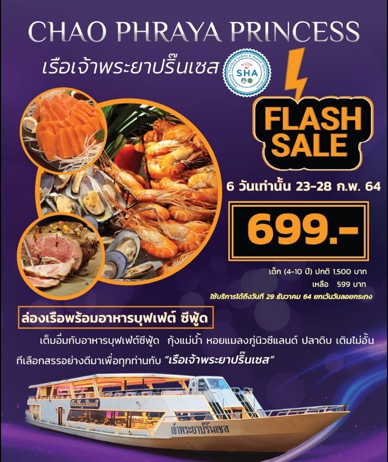 เรือเจ้าพระยาปริ๊นเซส **ราคานี้จองภายใน 28 ก.พ.64 เริ่มล่อง 5 มี.ค.64 เป็นต้นไป**