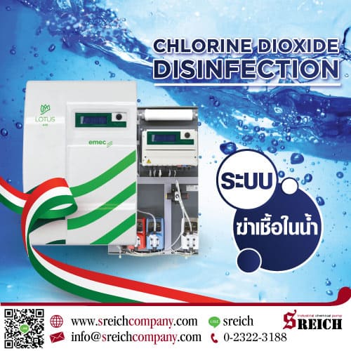 • ตัวช่วยให้การฆ่าเชื้อโรคในน้ำมีประสิทธิภาพมากยิ่งขึ้น ฆ่าเชื้อในน้ำได้สูงถึง 99.99 % ทั้งน้ำสำหรับการอุปโภค บริโภค หรือฆ่าเชื้อในน้ำเสีย ด้วย Lotus AIR Chlorine Dioxide Generator เครื่องผลิตคลอรีนไดออกไซต์ ที่ผลิตจากอิตาลีตามมาตรฐานความปลอดภัยของยุโรป นิยมใช้ใน