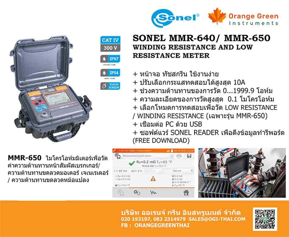 OGI-020193197SONEL MMR-640/ MMR-650 ไมโครโอห์มมิเตอร์ สำหรับงานตรวจวัด ความต้านทานหน้าสัมผัสเบรกเกอร์ ความต้านทานขดลวดมอเตอร์ เจเนเรเตอร์ ขดลวดหม้อแปลงไฟฟ้า แบรนด์ SONEL ประเทศโปแลนด์