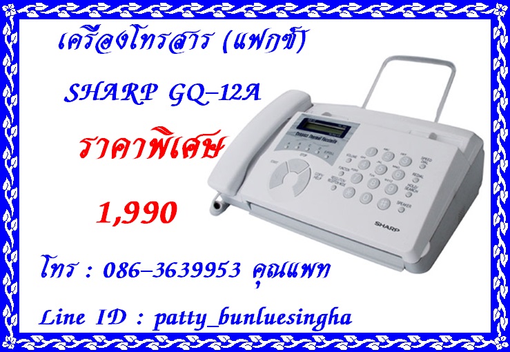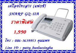 จำหน่ายเครื่องโทรสาร SHARP GQ-92 ราคาพิเศษ 2,590 บาทค่ะ เครื่องใหม่รับประกัน 1 ปี Tel.086-3639953 คุณแพท