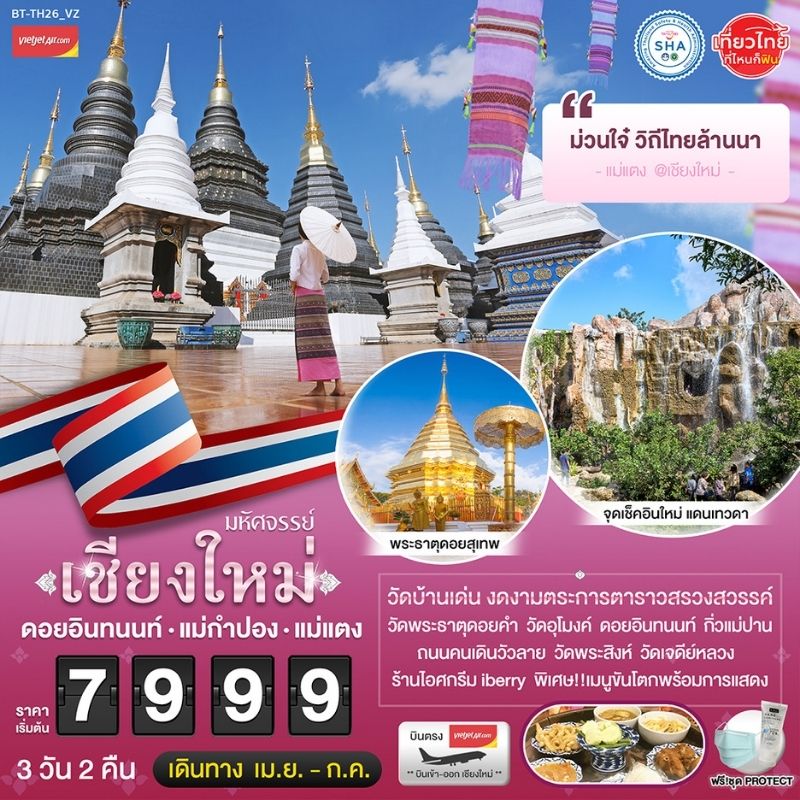 ธาตุดอยคำ -วัดอุโมงค์ – ดอยอินทนนท์ – กิ่วแม่ปาน – ถนนคนเดินวัวลาย – วัดพระสิงห์ – วัดเจดีย์หลวง –