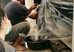 ใช้ปั้มน้ำแรงดันสูงฉีดอัดล้างท่อน้ำทิ้ง และชิ้นส่วนต่างๆ อย่างละเอียด