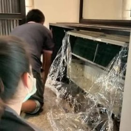 ใช้ปั้มน้ำแรงดันสูงฉีดอัดล้างท่อน้ำทิ้ง และชิ้นส่วนต่างๆ อย่างละเอียด