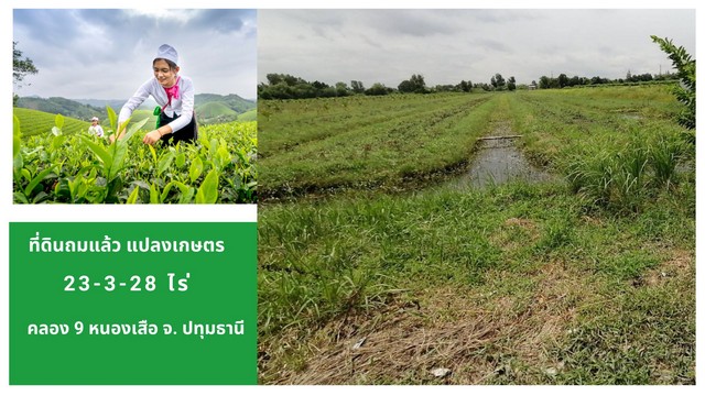 วรรณเพ็ญ สุขเกษมขายถูกที่ดิน 23-3-28 ไร่ (9,528 ตรว.) ที่ดินถมแล้ว ติดถนน 3 ด้าน ทางเข้าแปลงด้านข้าง ซ้าย ขวา และ หน้าแปลง ที่ดิน เป็นแปลงสวน กุหลาบและต้นมะลิ พื้นที่มีร่องน้ำไว้แล้ว และท้ายแปลง ใกล้คลองส่งน้ำ ใกล้ถนนเลียบคลองรพีพัฒน์ และ วัดจุฬาจินดาราม คลอง9 ตำบลบึงกาสาม อำเภอหนองเสือ จังหวัดปทุมธานี