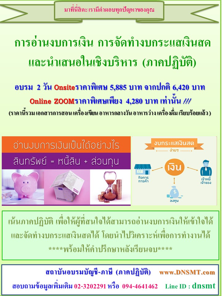 หลักสูตร : การอ่านงบการเงิน การจัดทำงบกระแสเงินสด และนำเสนอในเชิงบริหาร(ภาคปฏิบัติ)