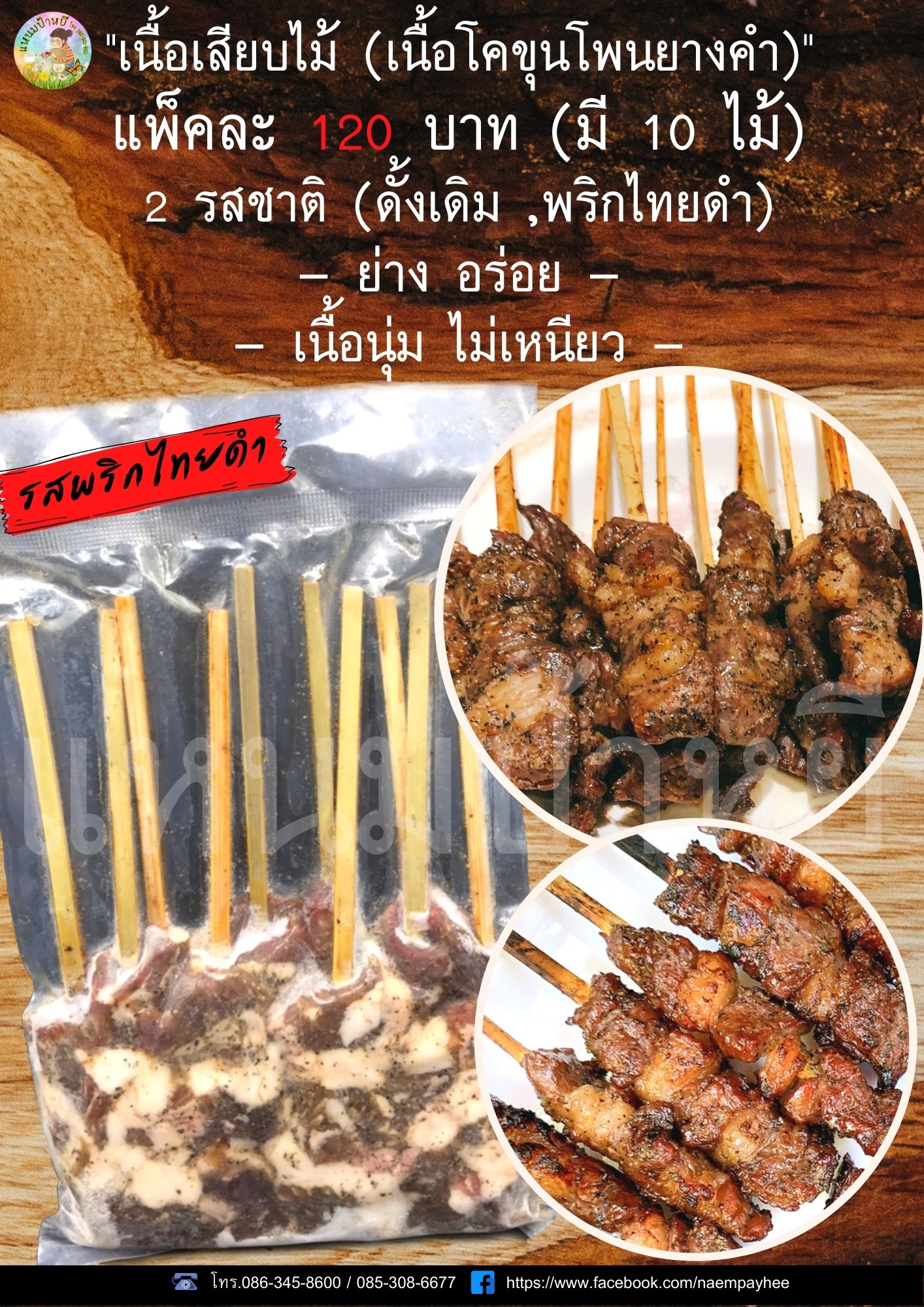 ร้านนี้มีแต่ของอร่อย เนื้อโคขุนโพนยางคำเสียบไม้ รสพริกไทยดำ