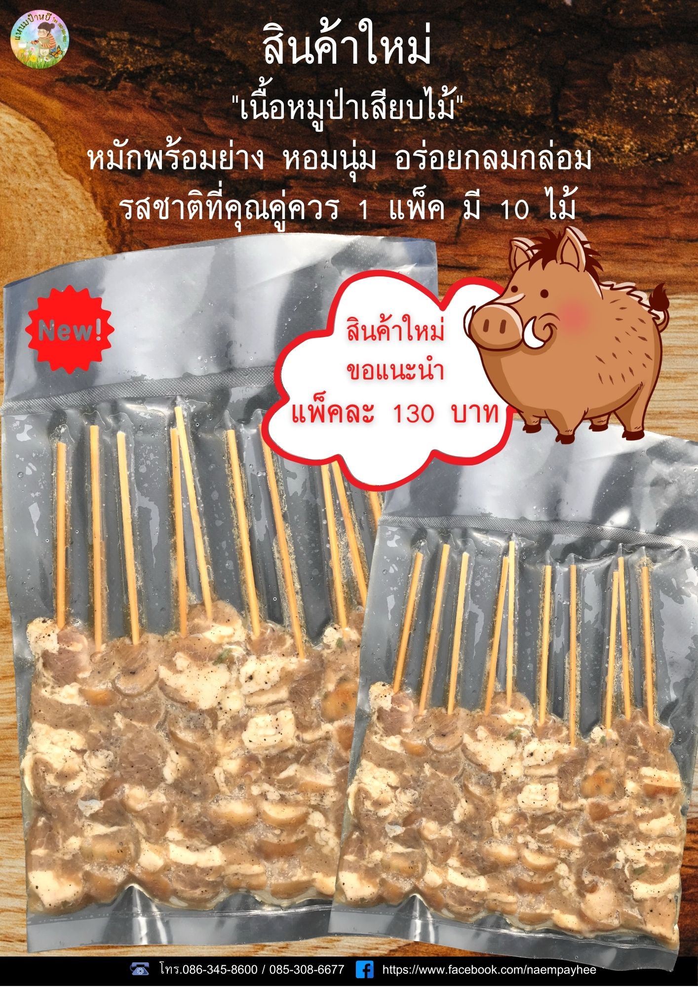 Darakorn Travelเนื้อหมูป่าเสียบไม้ หมักพร้อมทาน ปิ้งย่างเพลินๆ เนื้อนุ่มรสชาติกลมกล่อมอร่อย ต้องลองทาน