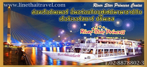 ล่องเรือแม่น้ำเจ้าพระยา กับ เรือริเวอร์สตาร์ ปริ้นเซส จะพาท่านดื่มด่ำกับบรรยากาศอันแสนโรแมนติกพร้อมทานอาหารบุฟเฟต์นานาชาติ ที่จะทำให้คืนพิเศษของคุณซาบซึ้งตรึงใจมิรู้ลืม
