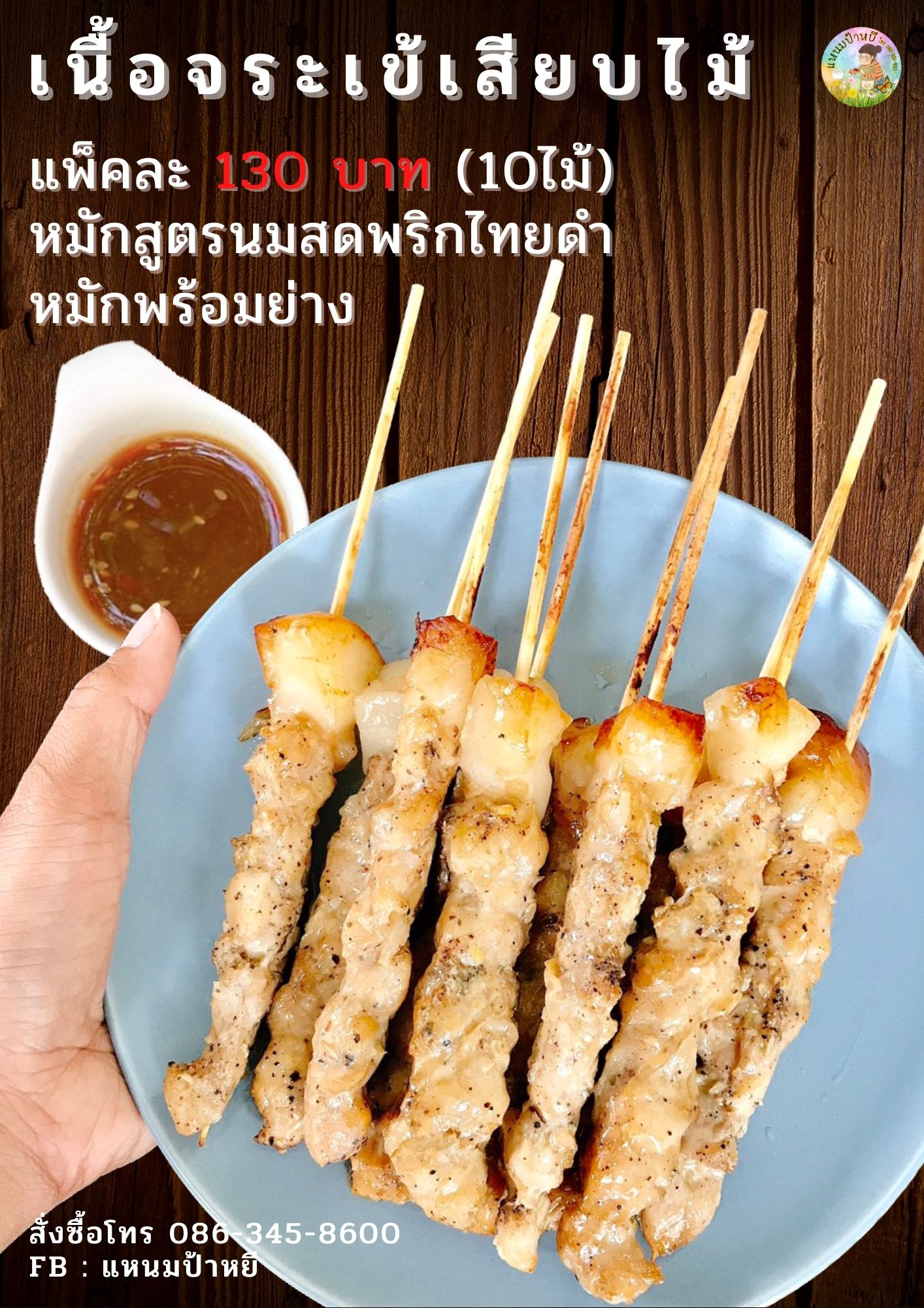 • เนื้อจระเข้เสียบไม้ หมักสูตรพริกไทดำนมสด
