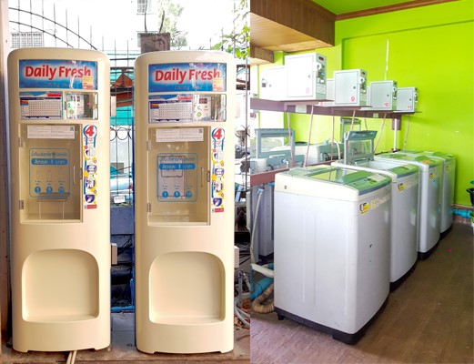 ตู้น้ำดื่มหยอดเหรียญ ร้านเสริมสวย และร้านกาแฟพร้อมสำหรับการให้บริการ