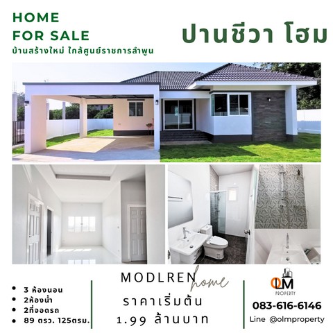 ขายบ้านเดี่ยว ชั้นเดียว สร้างใหม่ สไตล์ modern ใกล้ ศูนย์ราชการจังหวัดลำพูน
