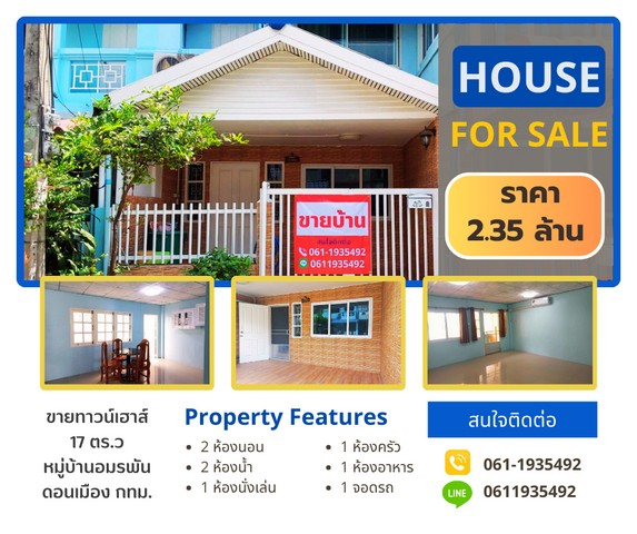Postprakard.shop Propertyขายด่วนทาวน์เฮาส์ 2 ชั้น รีโนเวทแล้วสวยงาม ขนาด 17 ตร.ว หมู่บ้านอมรพัน ดอนเมือง กรุงเทพ