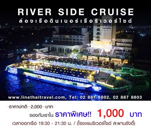 คลิ๊กดูรายละเอียด http://www.linethaitravel.com/ล่องเรือดินเนอร์-แม่น้ำเจ้าพระยา/เรือริเวอร์ไซด์-Riverside-Cruise.html