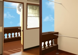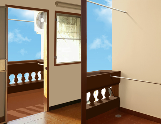 พร้อมระเบียงที่มีปลั๊กไฟก๊อกน้ำ และราวตากผ้า