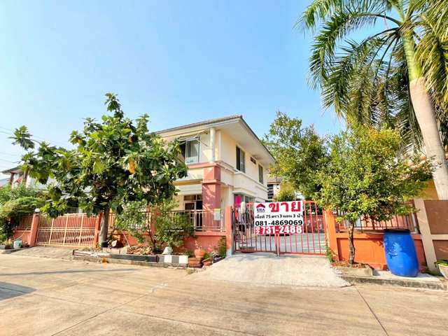 บ้านเดี่ยว 2 ชั้น เนื้อที่ 75.6 ตร.วา 3 ห้องนอน 3 ห้องน้ำ จอดรถได้ 2 คัน บ้านสภาพดี มีบริเวณรอบบ้าน หมู่บ้านติดถนนใหญ่ โครงการใหญ่ เงียบสงบ เป็นส่วนตัว